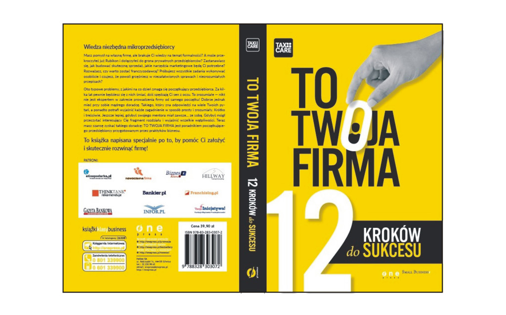 – Niezmiernie cieszy nas popularność naszej książki. Mamy nadzieję, że będzie ona dobrym kierunkowskazem, który w 12 krokach poprowadzi czytelnika do sukcesu – mówi Adam Głos, Prezes TaxCare, który jest pomysłodawcą i głównym partnerem książki. – Książka to zbiór wielu użytecznych zagadnień zebranych w jednym miejscu dzięki współpracy z ekspertami posiadającymi wieloletnie doświadczenie. Wszystko po to, aby stworzyć kompleksowy i praktyczny poradnik dla przedsiębiorcy – dodaje.