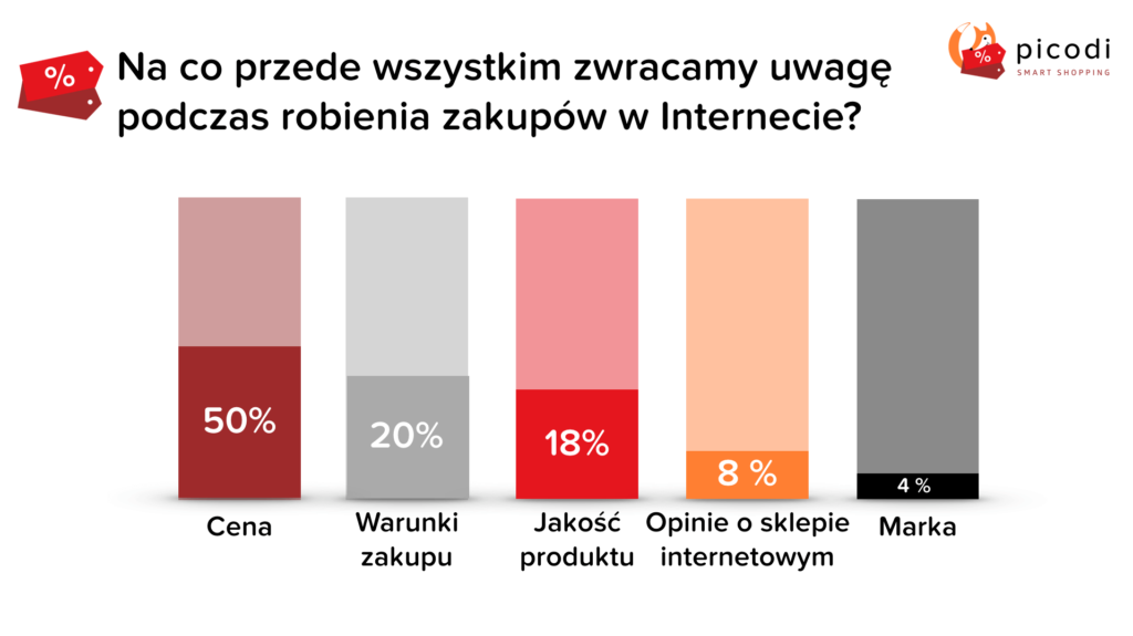 W skali kraju tylko 7% respondentów regularnie wyszukuje rabaty i zniżki. Jak pokazują wyniki badania, najbardziej lubimy oszczędzać na ubraniach, elektronice i kosmetykach. Polacy w sieci nie kupują jednak często i nie wydają dużo. Priorytetem jest dla nich niska cena, która podczas internetowych zakupów jest często jest ważniejsza niż wygoda i bezpieczeństwo.